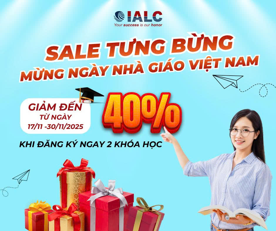 Tháng 11 này, IALC ENGLISH CENTRE triển khai chương trình sale cực mạnh, áp dụng cho cả Khóa Teen (Lớp 5–12) và Khóa Chinh Phục IELTS -cam kết mang lại môi trường học chuẩn, quà tặng giá trị và lộ trình rõ ràng.